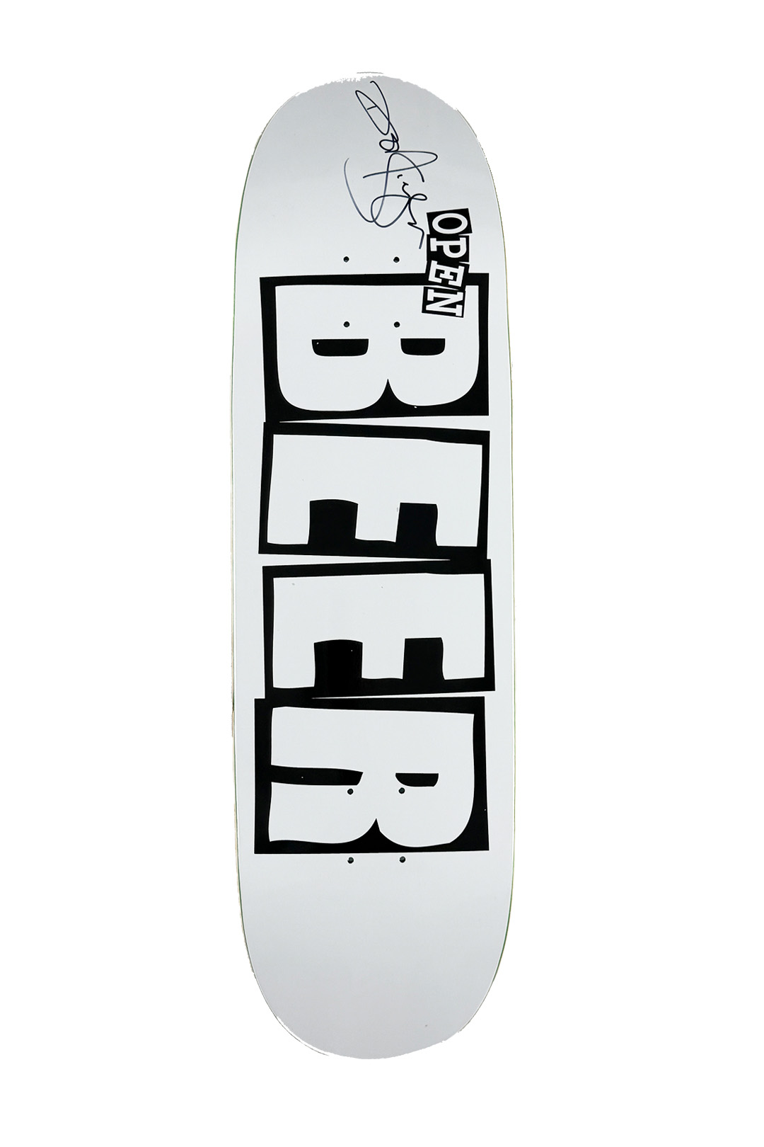 BAKER – NUGE OPEN BEER LOGO AUTOGRAPHED 9.25” X 32.75” DECK